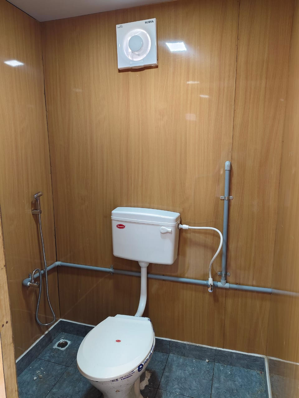 Fully Equipped: Flush system, water tanks, washbasins, ventilation, lighting, and plumbing.